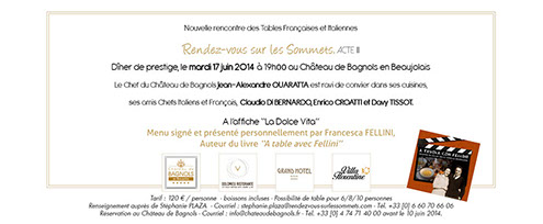 Au Chef Jean-Alexandre Ouaratta et à toute l’équipe du Château de Bagnols pour avoir accueilli « Rendez-vous sur les sommets » Acte III.